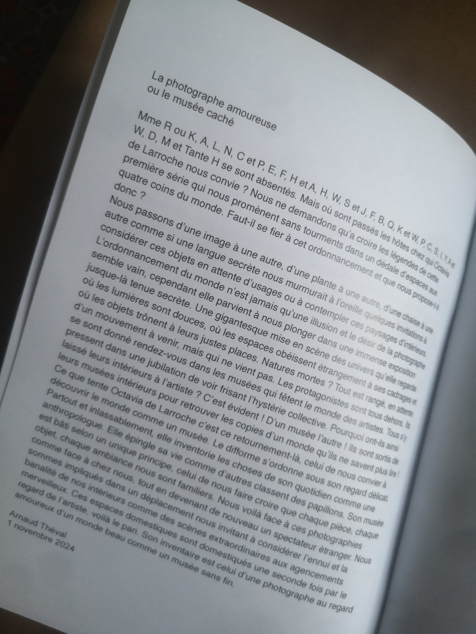 2024, novembre, Atelier Seruse, série Intérieurs, 76 photographies 8×10 cm en une composition de 19 ensembles, édition d’un catalogue chez Le Bruit de la Nuit.